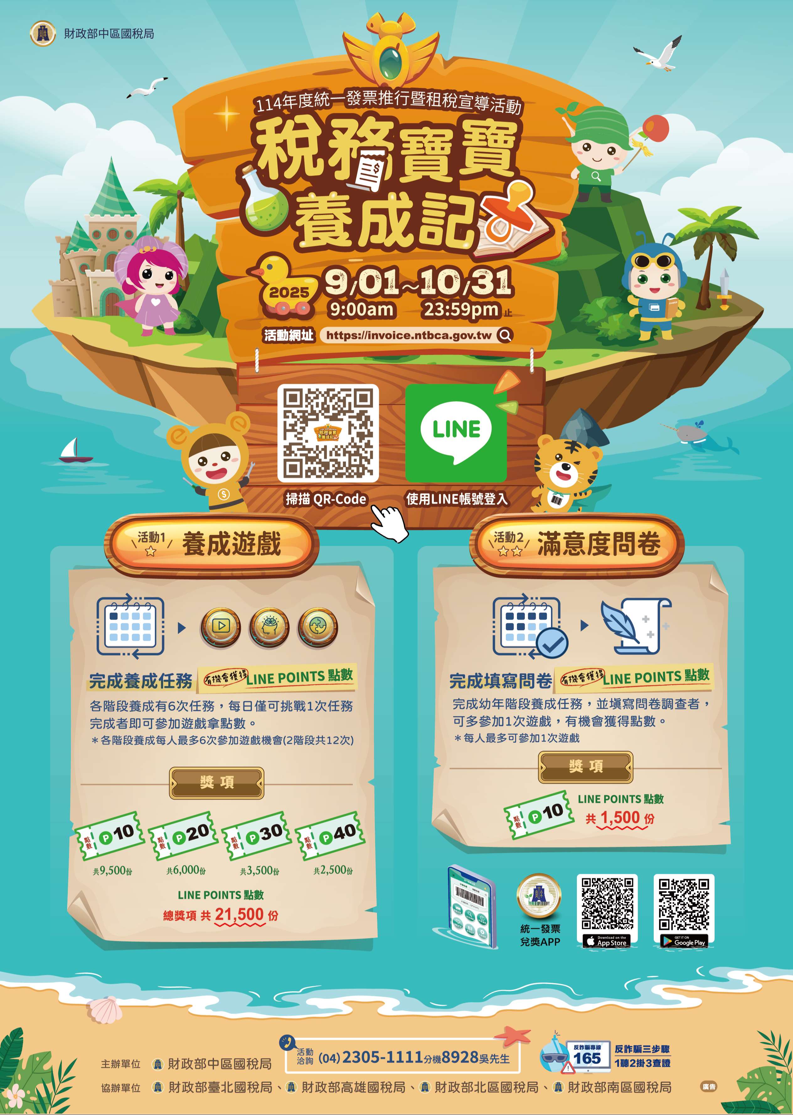 二、活動內容:包含養成遊戲及滿意度問卷,完成有機會獲得LINE POINTS點數。
