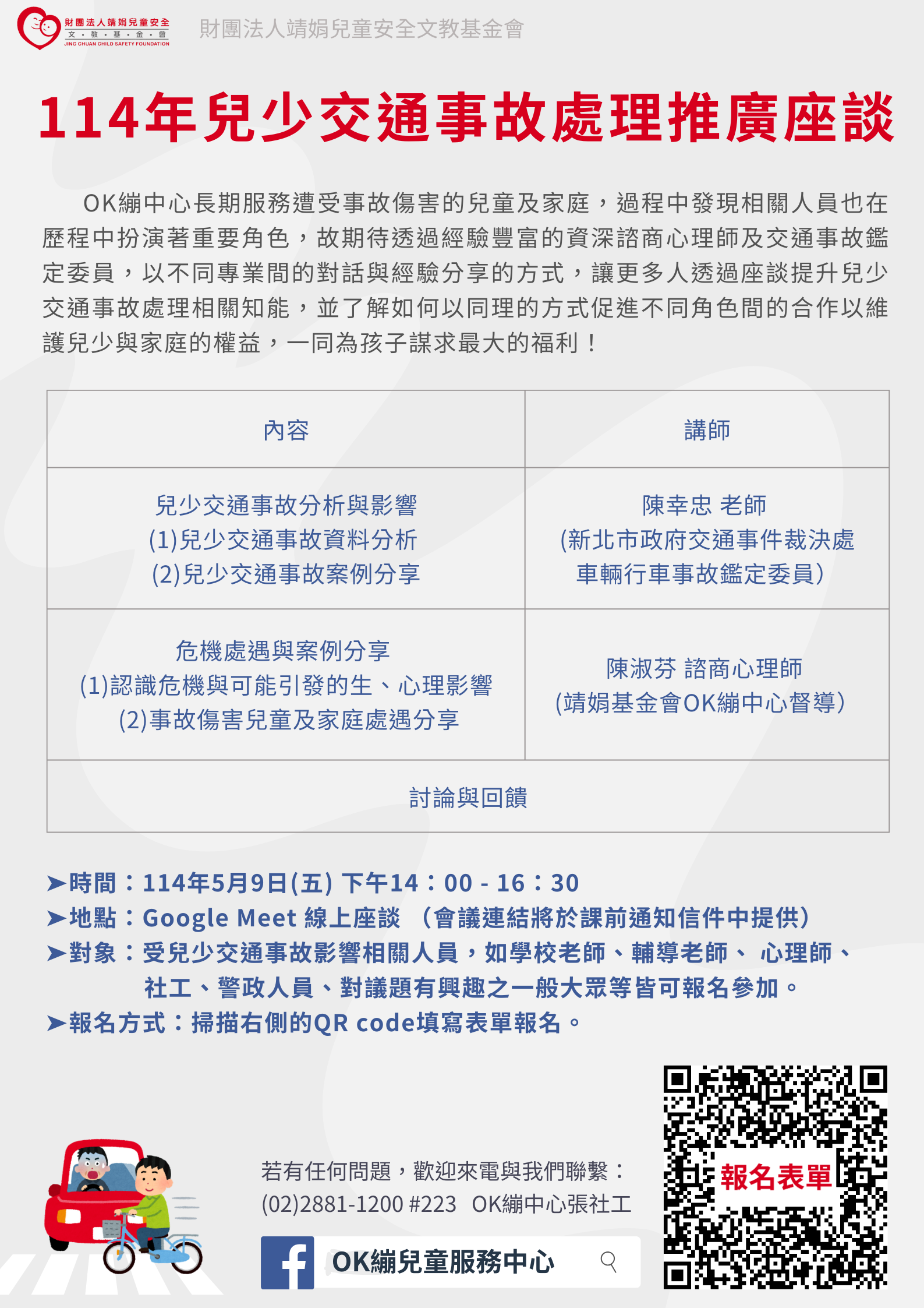 四、檢附「114年兒少交通事故處理座談」宣傳單張1份。