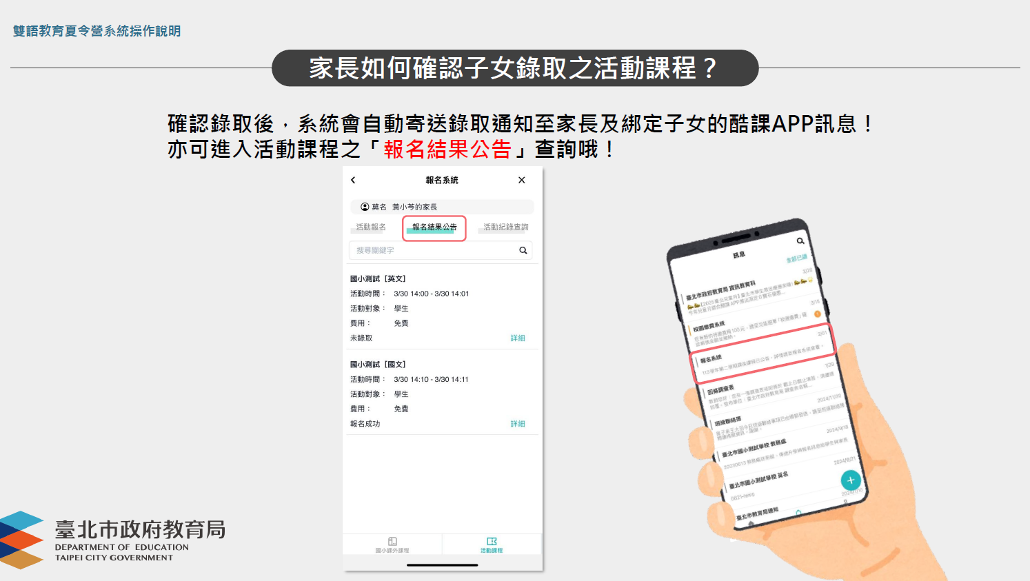 (1)報名時間:自114年5月26日(星期一)上午9時至 114年5月28日(星期三)中午12時止。(2)錄取公告:以電腦抽籤方式排定錄取名單,於114 年5月29日(星期四)上午9時,由系統推播發送個 人正備取情形。